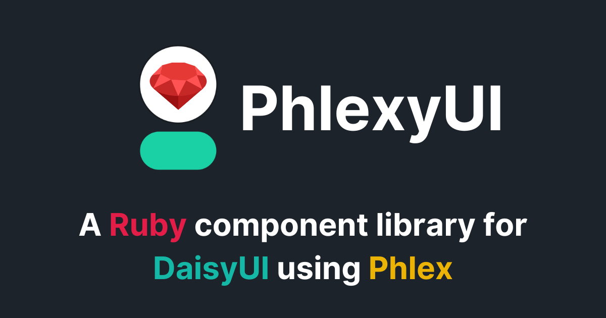 PhlexyUI is a component library built with Phlex, a Ruby gem for building fast object-oriented HTML components. On top of DaisyUI, the most popular component library for Tailwind CSS.