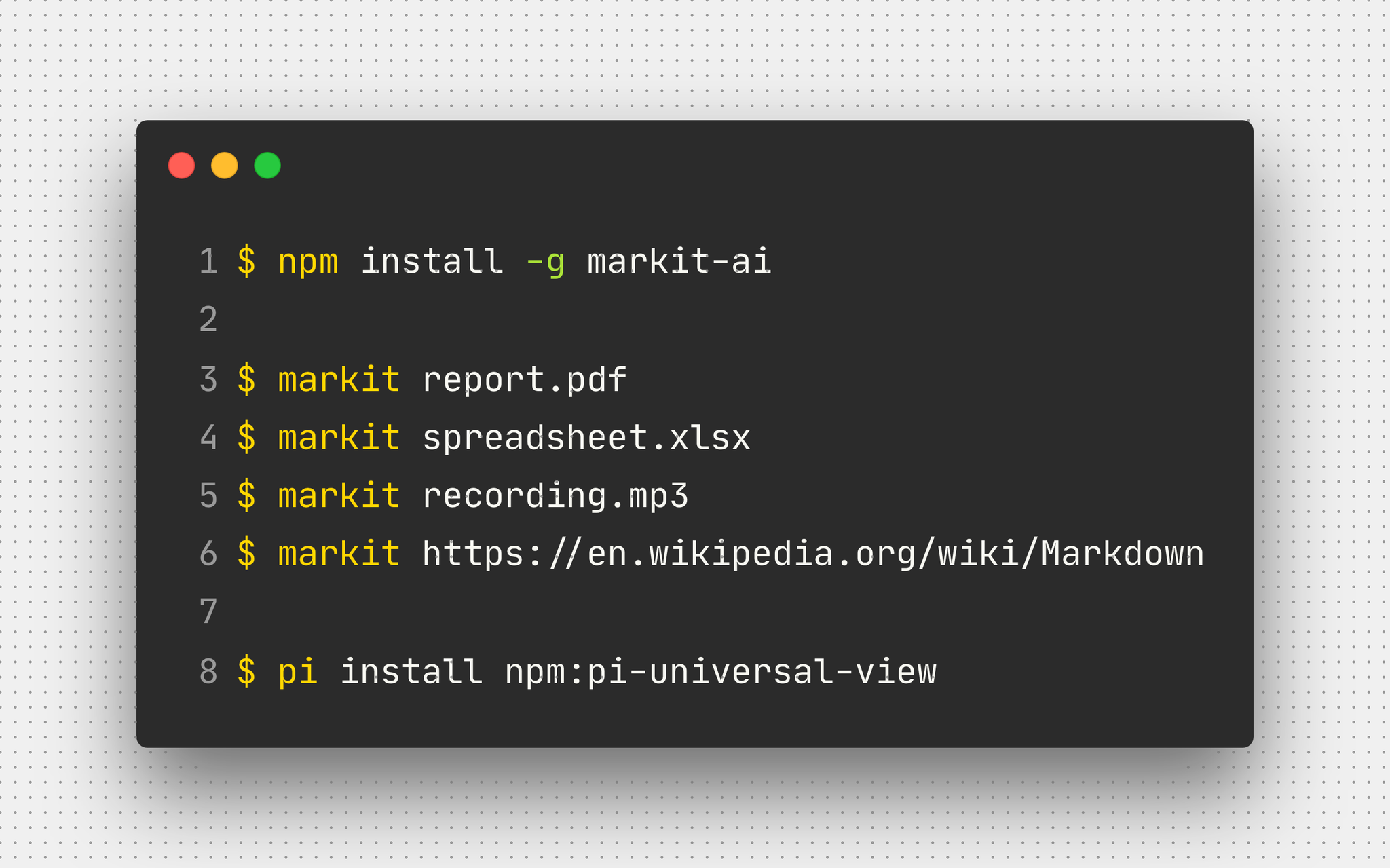 markit converts any file to markdown. pdf, docx, xlsx, epub, audio, zip, urls, whatever. pi-universal-view plugs as a native tool it into @badlogicgames pi so your agent can read anything.